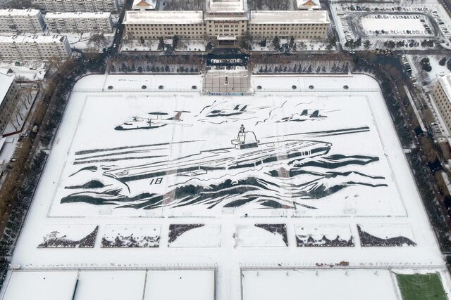 خلق تصویر برفی ناوهواپیمابر «فوجیان» با مشارکت ۱۲۰۰ دانشجو در شمال چین